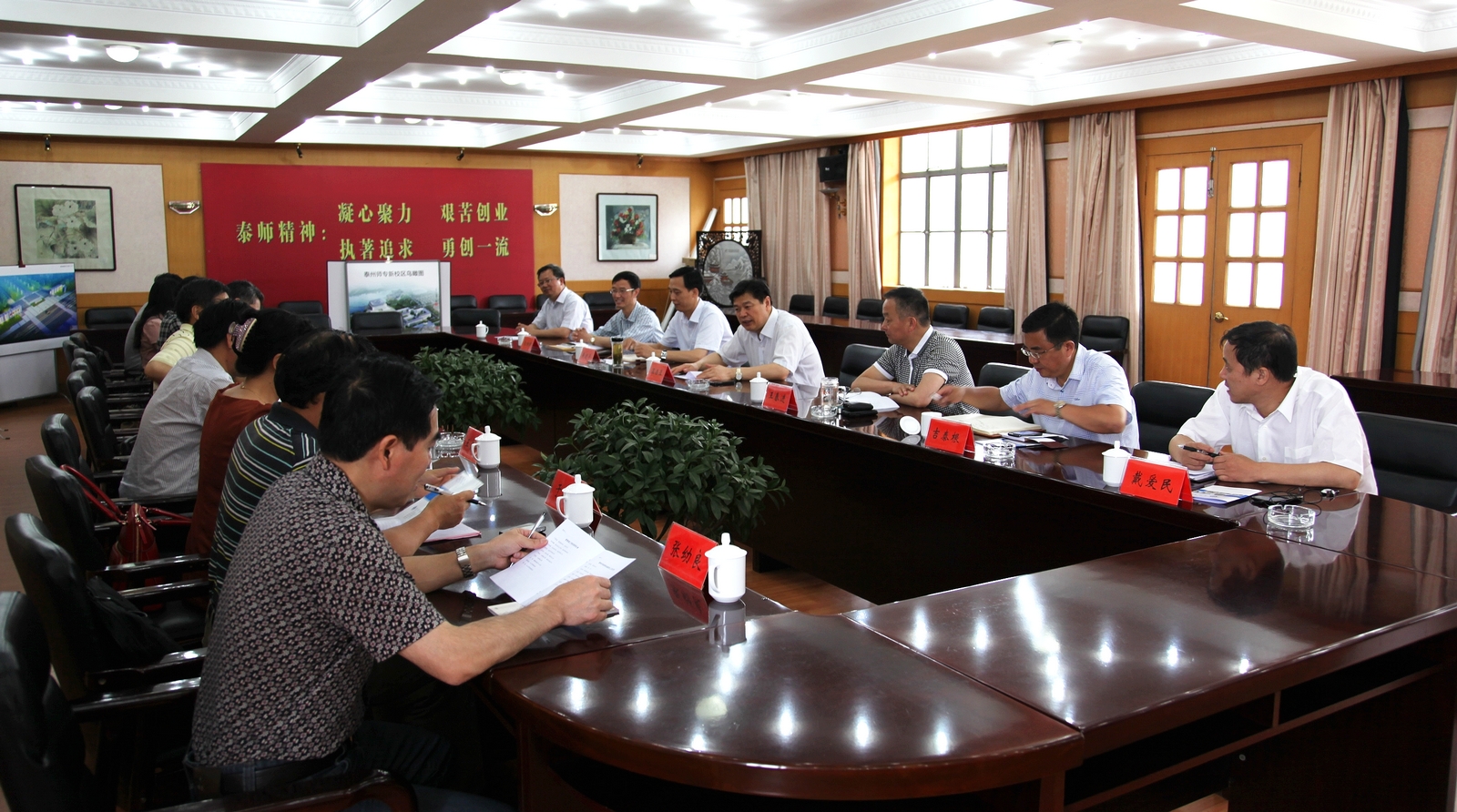 我院领导温潘亚、王春进、黄建平,纪委副书记、办公室主任吉泰根,监察室主任张桐林,工会副主席戴爱民,人文学院党总支书记孙爱斌等参加了交流会。
