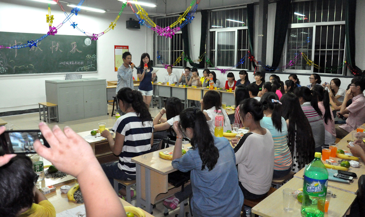 9月19日晚,音乐学院2013级音乐学(本)全体同学,集中在平房19教室,举办了中秋联欢会。