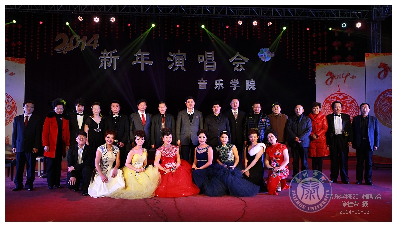 2014年1月3日晚,音乐学院在春晖校区体育馆举办了2014新年演唱会。校党委副书记、院长温潘亚,副院长田浩、孙玲芳、陈克军、邓友祥、王美林、张曙光,副院级调研员杨淑娟等出席。校党委书记李久生特地从常州向演唱会发来了贺电。