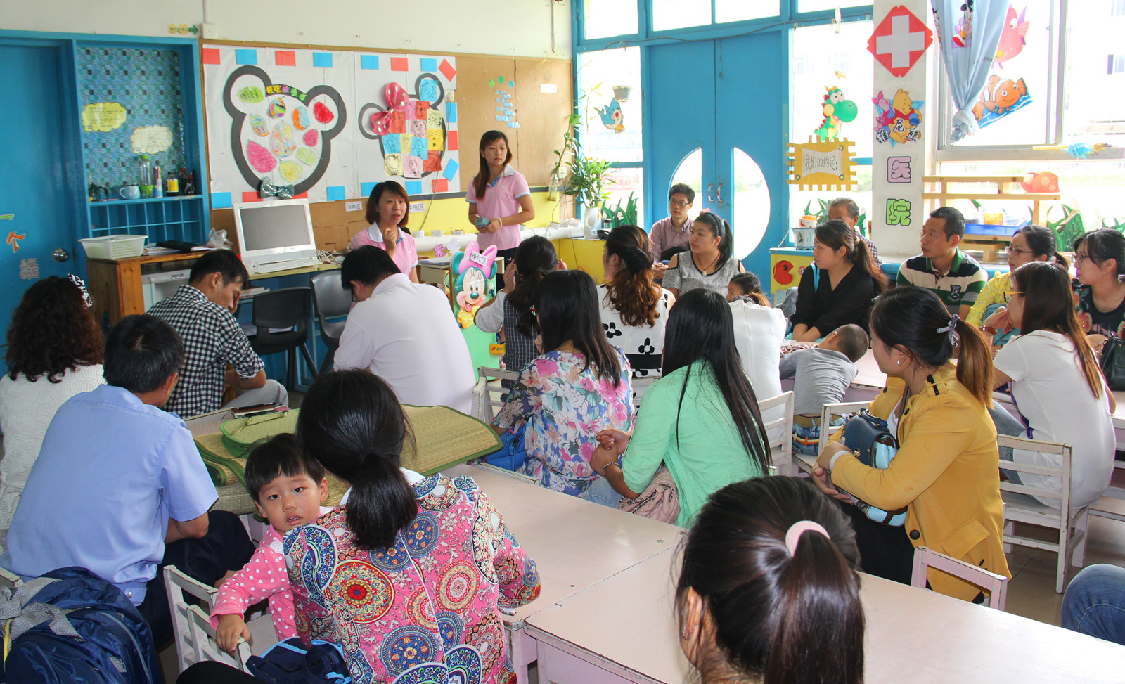 会议由副园长刘蕾主持。她首先就幼儿园的园所环境、办园理念、师资状况、所获荣誉以及特色课程等内容,帮助家长加深对幼儿园的了解;接着,向家长重点介绍了幼儿一日活动内容,让家长理解“幼儿的一日生活都是课程”,幼儿园教育不同于小学教育,必须贯穿在幼儿一日活动的各个环节。她还向大家推荐了现行的十二种家园互动方式,营造学校、家庭、社会三位一体的教育网络,共同为幼儿的发展创造良好的条件。
