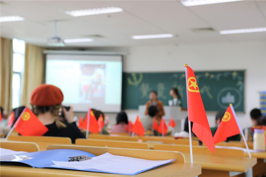音乐学院17音乐学1、2班团支部的主题团日活动以来自革命老区贵州省遵义市习水县土城镇的学生赵佩玉的自述开场,以土城的革命活动为线索,带领观众穿越时空,追忆峥嵘岁月,传承红色基因,争当新时代先锋。外国语学院17英师2班团支部以“赞赞新时代”为主题,用国际视野、多国语言阐释新时代。两场团日活动主题突出,形式多样,专业特色鲜明,有效激发了同学们的思想共鸣。