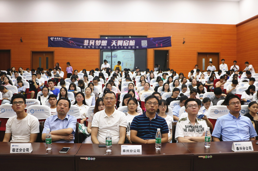 9月7日晚,中国电信江苏公司校园宣讲会在bat365行政楼D1216举办,计算机与科学学院、人文学院、外国语学院、经济与管理学院、音乐学院、医药与化学化工学院等2019届毕业生200余人参加了活动。