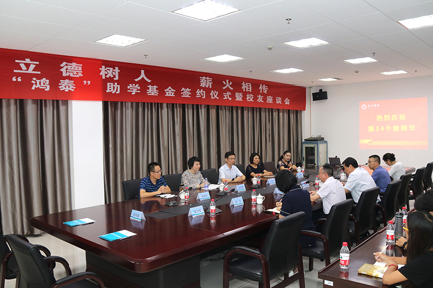 9月10日下午,bat365在1705会议室召开“鸿泰”校友助学基金签约仪式暨校友座谈会。优秀校友代表与学生代表济济一堂,共度节日。感恩善学、执着奋进的校园文化传统在他们间薪火相传,习近平总书记提出的立德树人的教育理念在bat365在线中国官网登录入口有力彰显。