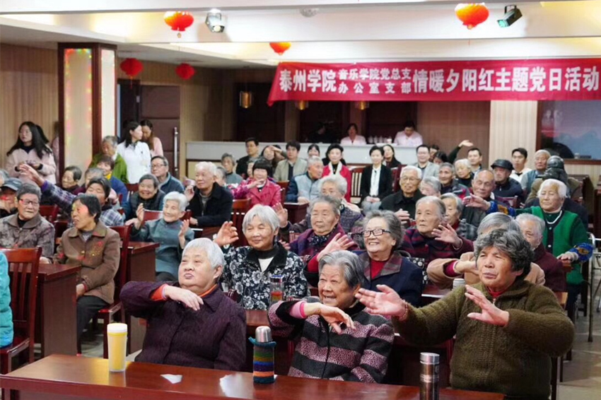 11月7日下午两点,音乐学院党总支和机关办公室党支部同赴泰州市福利中心开展“情暖夕阳红”党日活动。副校长赵云燕、近20名党员及音乐学院50名爱心志愿者参加了此次活动。