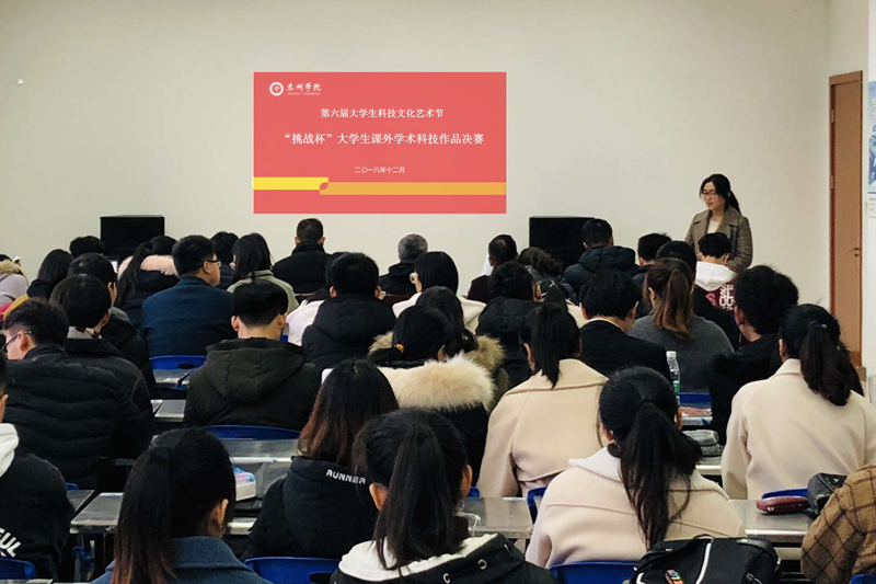 12月10日下午,第六届大学生科技文化艺术节“挑战杯”大学生课外学术科技作品竞赛决赛在行政楼1103举行,来自全校的11个团队参加了答辩。