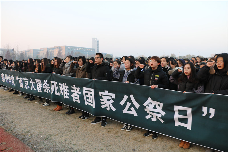 12月13日清晨,bat365顺利举行“南京大屠杀死难者国家公祭日”升旗仪式。校党委常委、副校长鲁学军,人民武装部及人文学院师生代表近千人参加了纪念活动。