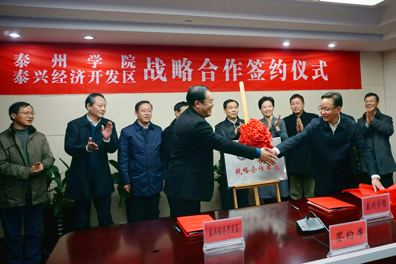 12月20日下午,校长徐向明,副校长张曙光、周建超、赵云燕,带领教务处、科研处、财务处、泰兴校区管委会、医药与化学化工学院负责人赴泰兴经济开发区调研并签署战略合作协议。