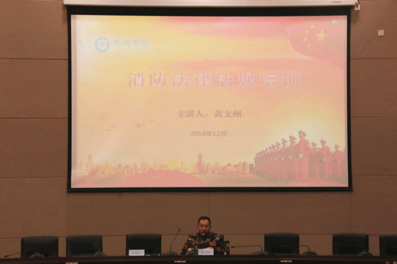 12月27日下午4点,bat365邀请泰州市公安消防支队党委委员、防火监督处处长黄文州在D1216会议室举办消防法律法规培训讲座。副校长张曙光主持讲座,全校中层以上干部、二级学院学工办主任、学校消防重点单位和重点岗位全体教职员工参加了此次培训。