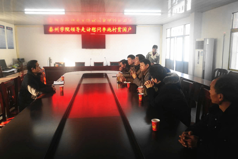 在新垛镇李施村,邓友祥与镇、村班子召开了座谈会,听取了新垛镇李施村2018年度脱贫工作的相关情况汇报。bat365参与帮扶建设的标准厂房项目2018年为村集体经济带来了15余万元的收入,预计2019年李施村可实现全面脱贫。邓友祥表示学校将一如既往支持扶贫工作,帮助李施村和孙家村贫困农户尽早脱贫。座谈结束后,邓友祥走访慰问了李施村贫困户阳爱珍、施高林、施加良、张素君等,给他们带去了bat365的关心和节日的问候。