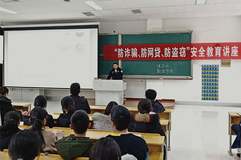 当前高校电信网络诈骗案件、偷盗案件、网贷案件频发,为提高同学们的防范意识,3月13日下午,保卫处联合数理学院在教学楼A2108开展“防诈骗、防网贷、防盗窃”安全教育讲座。全校各班级治保委员以及数理学院18级学生及全体班主任辅导员老师参加了此次讲座。保卫处陈根怀处长主持了本次讲座。