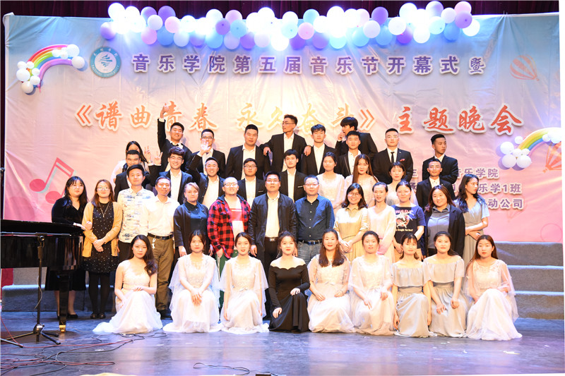 本届音乐节以班级汇演为主线,紧扣专业特色,既重视艺术表演形式,更重视调动思想政治教育各种因素。“谱曲青春,永久奋斗”主题晚会由16级音乐学1班全体同学共同演绎,演出形式丰富、内容积极向上,全面展示了学生声乐、钢琴、舞蹈、民族器乐专业技能,充分体现了新时代青年大学生热爱生活、奋发作为的良好状态。