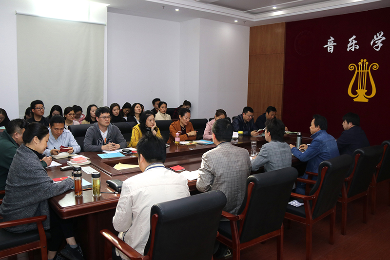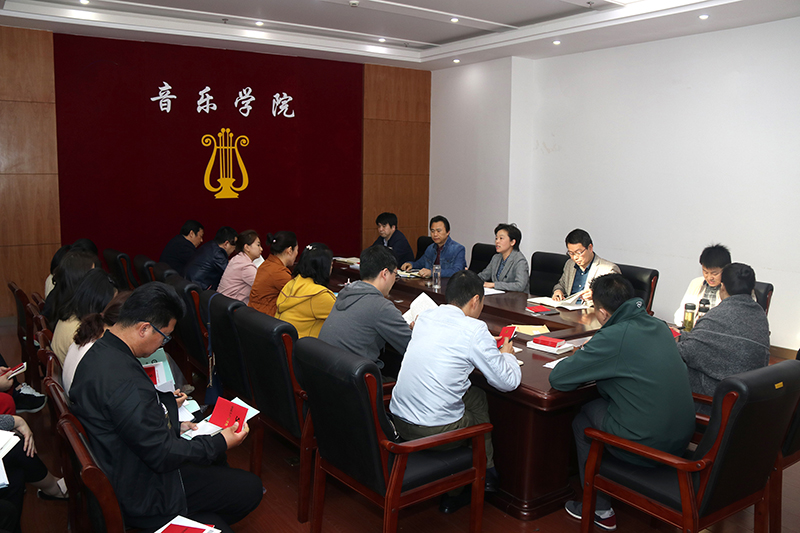 5月8日下午,校党委常委、副校长赵云燕在艺术楼C1121会议室,给音乐学院全体教职员工召开专题党课,并做形势政策报告。