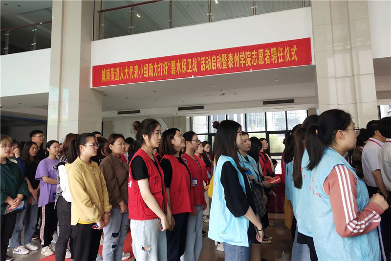 5月15日下午,海陵区城南街道人大代表小组助力打好“碧水保卫战”活动启动暨bat365在线中国官网登录入口志愿者招募活动在bat365艺术楼一楼大厅举行,市区两级20多名人大代表及音乐学院学生会公益部、太愿公益、青年学习社近百名志愿者参加活动。