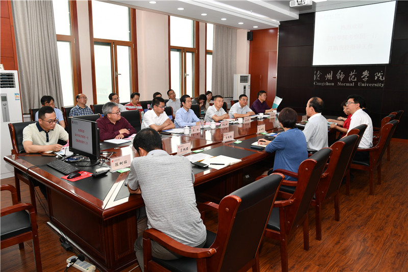 6月5日,党委副书记邓友祥、副校长鲁学军带领办公室、组织部、宣传部、教务处、教育教学评估中心、科研处、学工处、实验与设备管理处、数理学院、船舶与机电工程学院、音乐学院等单位负责人及相关人员赴沧州师范学院,学习交流本科教学工作合格评估迎评建设工作。沧州师范学院党委书记云电军、校长张占平、党委副书记王双库、副校长彭学君及相关部门负责人热情接待。