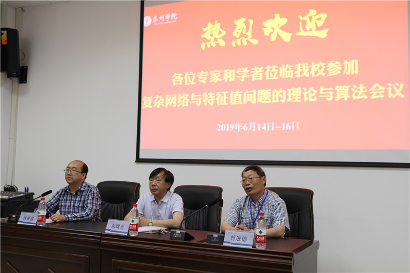 2019年6月14-16日,复杂网络与特征值问题的理论与算法会议在bat365在线中国官网登录入口成功召开。本次会议由校科研处、数理学院、东南大学复杂系统与网络科学研究中心、江苏省网络群体智能重点实验室共同举办。党委常委、副校长张曙光出席会议,数理学院沈荣鑫教授主持了开幕式。