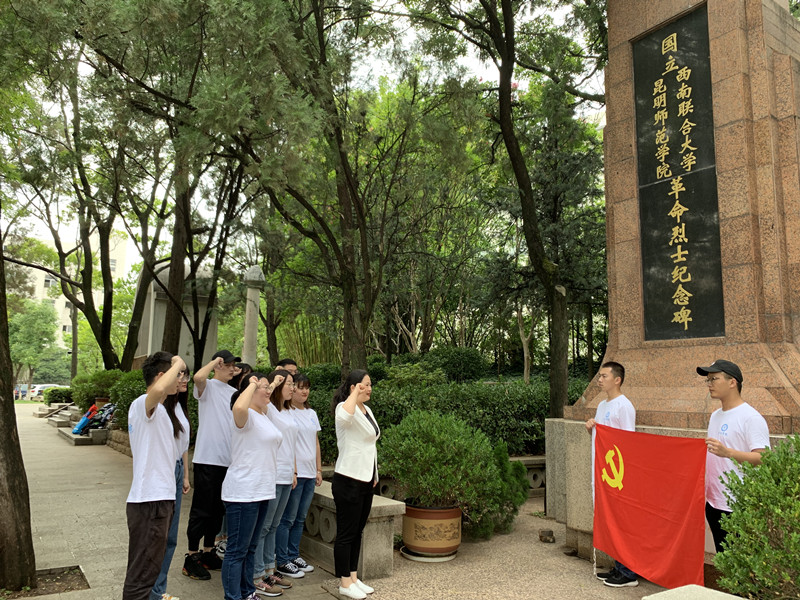 为庆祝中国共产党成立98周年,6月30日,美术学院学工支部组织学生党员、入党积极分子前往云南大学、云南师范大学西南联大旧址开展主题党日活动。活动以“不忘初心、牢记使命——重温红色情怀,争做时代新人”为主题,支部成员先后参观了云南大学革命烈士纪念碑、国立西南联合大学原教室、“一二·一”运动纪念柱、国立西南联合大学纪念碑、国立西南联合大学革命烈士纪念碑等地。