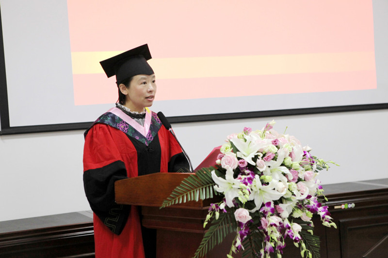 学位授予仪式在庄严而嘹亮的国歌声中拉开序幕,赵云燕宣读了《关于授予唐熔等30名学生学士学位的决定》。学生代表、教师代表分别表达了各自感想和依恋之情。