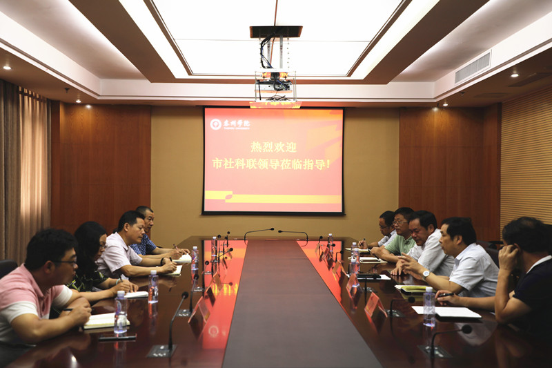 7月5日上午,泰州市社科联副主席曹宝林、办公室主任栾国庆、省社科院泰州分院经济所所长朱菊萍等一行,来校商谈共同推进“泰州学派”研究工作相关事宜。校党委副书记、校长徐向明教授,校党委常委、副校长周建超教授接待了来宾。科研处、马克思主义学院和宣传部相关人员参加会见。
