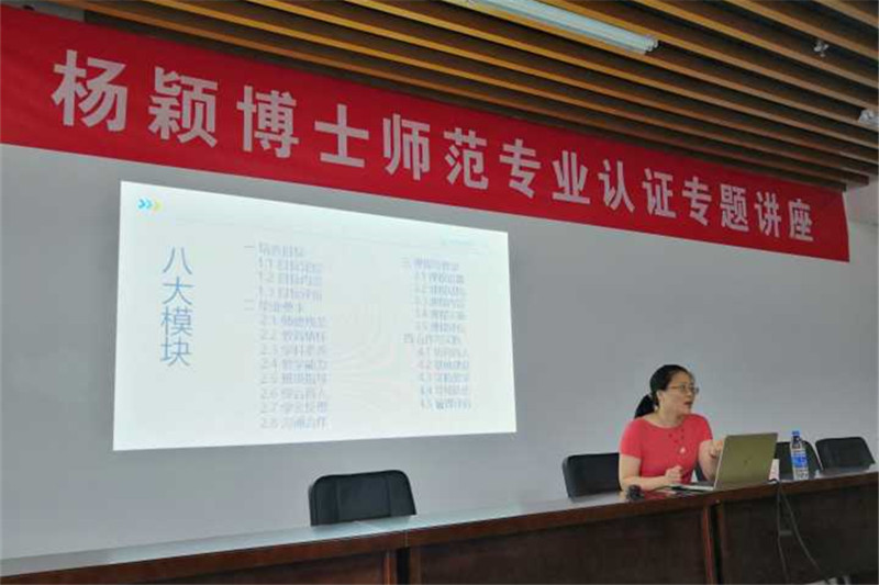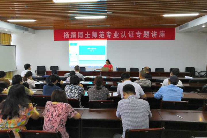 为推进师范专业认证迎评工作的深入开展,7月7日上午,人文学院邀请淮阴师范学院文学院副院长杨颖博士在D2401会议室举行专题讲座,学院领导及中文系全体教师参加学习。
