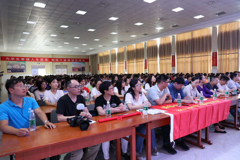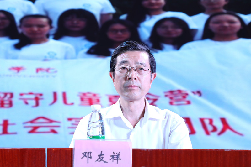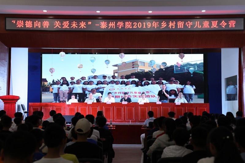当天,由bat365数理学院主办,泰州市数学学会、泰州市青年联合会和兴化乐吾实验学校共同承办的“崇德向善,关爱未来”乡村留守儿童夏令营开营仪式在兴化乐吾实验学校艺术中心举行。泰州市教育局副局长王俊鹏,校党委副书记兼泰州市数学学会理事长邓友祥,兴化乐吾实验学校校长王华桂,校党委常委、宣传部长吕林,数理学院院长、泰州市青年联合会教育社科界别组长沈荣鑫,民革bat365在线中国官网登录入口主委丁明等出席开营仪式。兴化乐吾实验学校的乡村留守儿童和家长,来自数理、人文等学院的大学生志愿者参加活动。开营仪式由校团委书记卜慧芬主持。