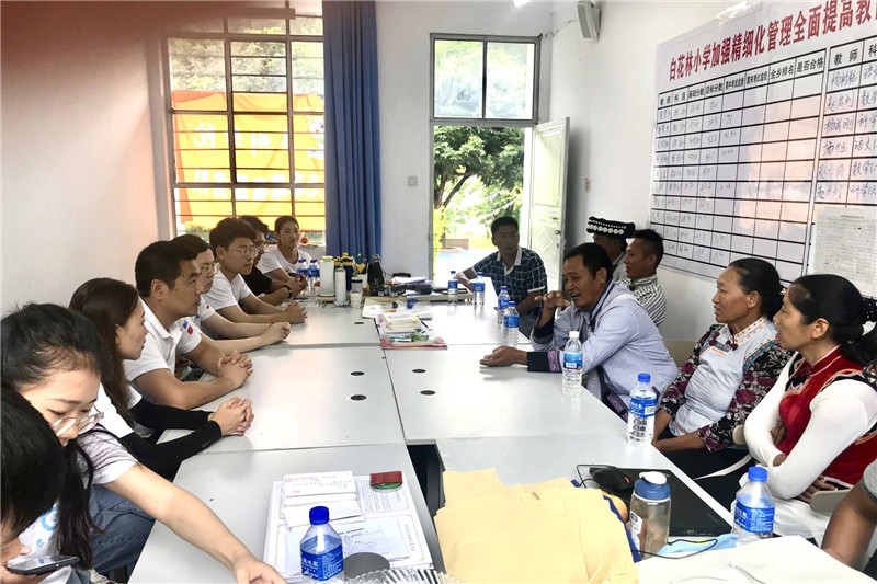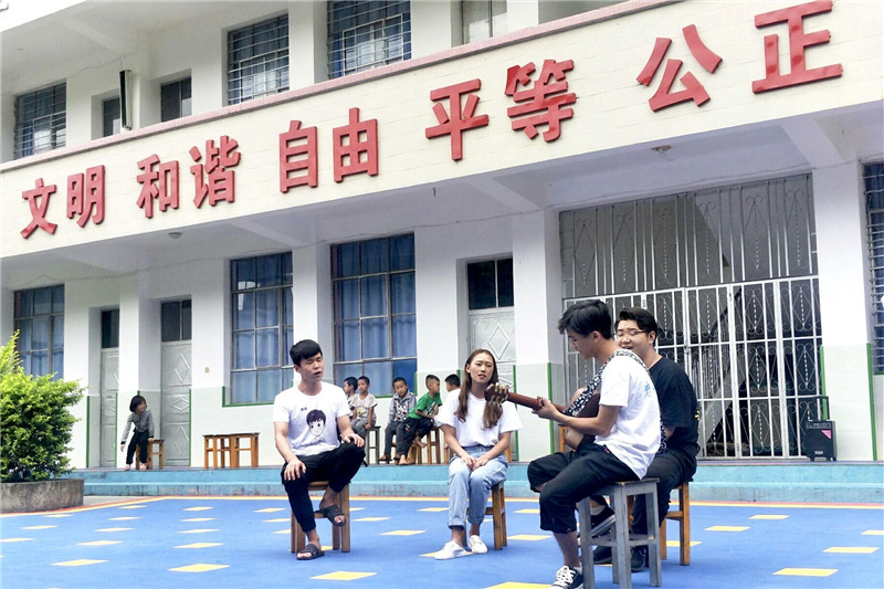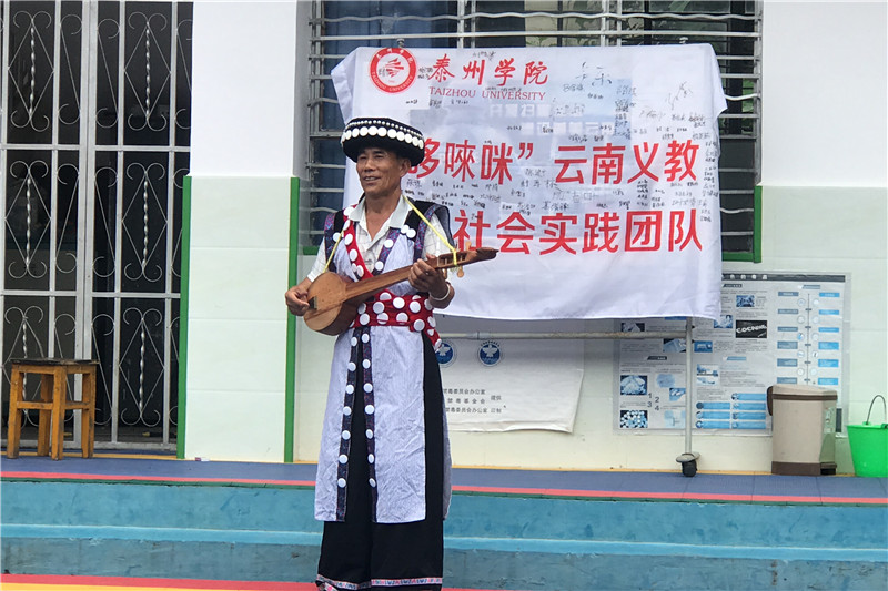 7月22日上午,云南省保山市芒宽乡傈僳族民间艺术家胡三八、七花一、杨学华、阿恰叶、胡桂花一行五人来到白花林小学,与正在当地支教的bat365在线中国官网登录入口“哆唻咪”暑期社会实践团队进行了艺术交流活动,芒宽乡中心小学校长张玉先、副校长张建斌及白花林80多名师生一同参与。