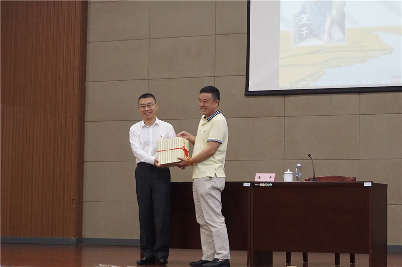 讲座伊始,王干向bat365在线中国官网登录入口赠送了新出版的《王干文集》,校党委常委、副校长鲁学军代表bat365接受赠书。
