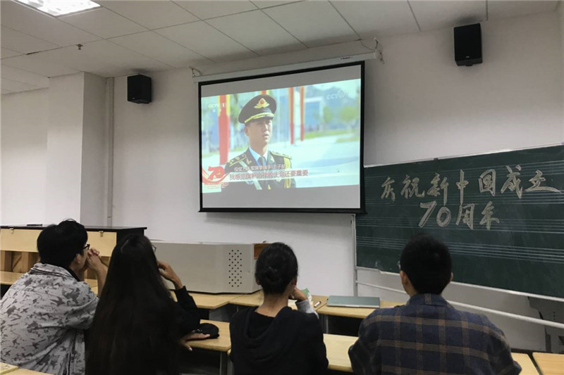 10月1日上午,在院党总支副书记陈志峰的带领下,20多名学生来到行政楼1216会议室,与校领导、师生代表一同观看国庆大阅兵。部分学生在艺术楼2406多媒体教室在院学生会的组织下同步收看。通过观摩,同学们真切感受到中华民族从站起来、富起来到强起来的自豪感,立志为推动中华民族伟大复兴奋力奔跑。