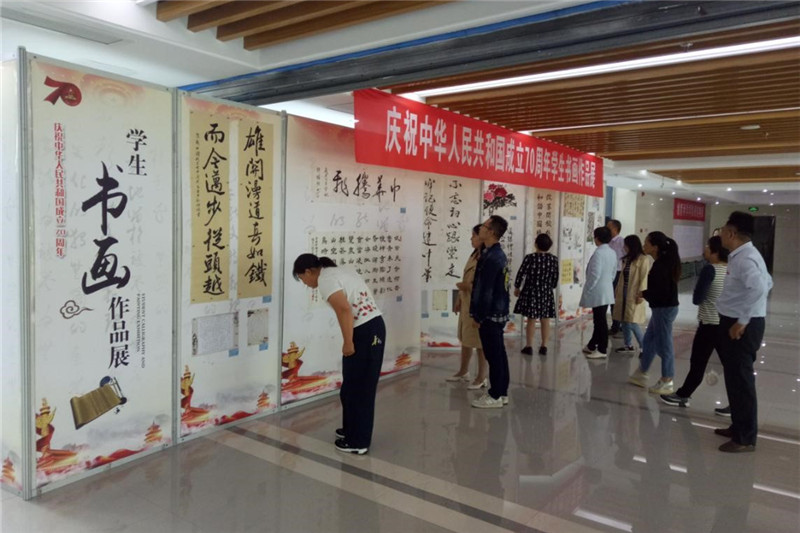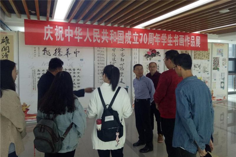 10月8日起,bat365在行政楼2楼中厅举办庆祝中华人民共和国成立70周年学生书画作品展,吸引众多师生驻足观赏。
