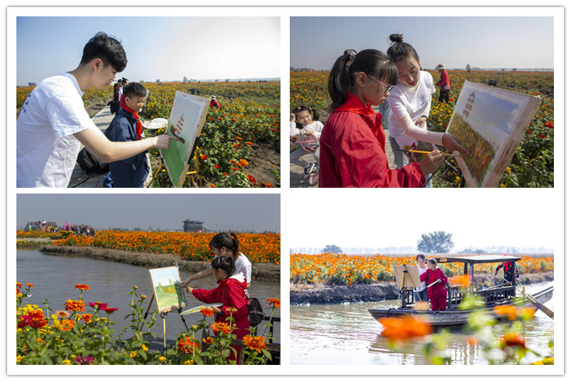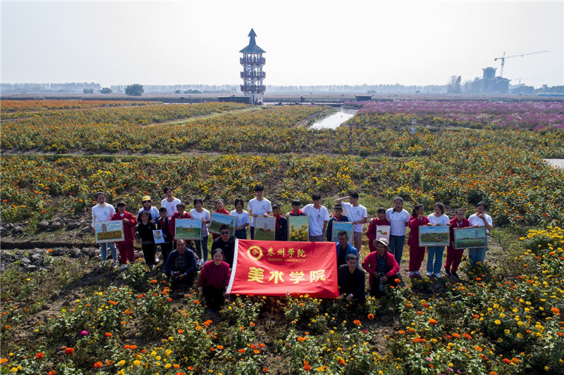 兴化以千垛花海闻名世界,与法国普罗旺斯薰衣草花海、荷兰郁金香花海和日本东京都樱花花海一起,并称全球“四大花海”。学生们用手中的画笔在花的海洋中进行绘画创作,手把手的传承绘画技艺,感受千垛花海迷人的金秋美景。