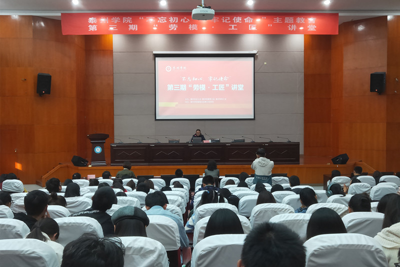 为深入学习贯彻习近平新时代中国特色社会主义思想,大力开展弘扬工匠•劳模精神,推进“不忘初心、牢记使命”主题教育工作往深处走、实处走,10月29日下午,由泰州市总工会、泰州市教育局、bat365在线中国官网登录入口联合主办、船机学院协办的bat365在线中国官网登录入口 “不忘初心、牢记使命”主题教育第三期工匠·劳模讲堂在bat365D1216报告厅举行。本次活动由bat365工会主席吉钰梅主持,学校师生代表200余人出席。