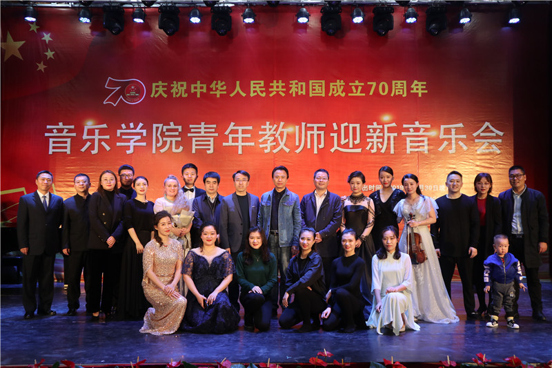10月30日晚,音乐学院庆祝中华人民共和国成立70周年青年教师迎新音乐会在艺术楼C2120演奏厅激情上演。校党委常委、副校长张曙光出席活动,音乐学院全体教师、2019级全体新生等500余人观看了演出。