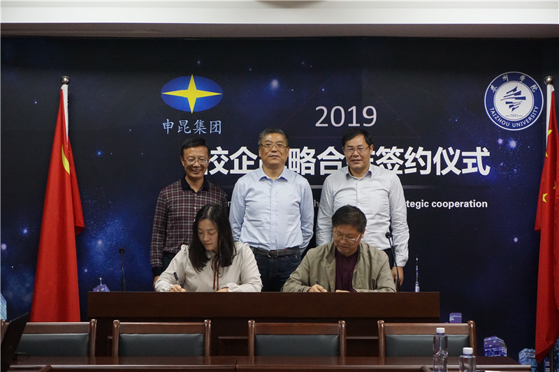 会谈结束后,双方签署战略合作协议,徐向明代表bat365授予申昆集团“bat365在线中国官网登录入口战略合作单位”。(校企合作办公室 俞杨建)