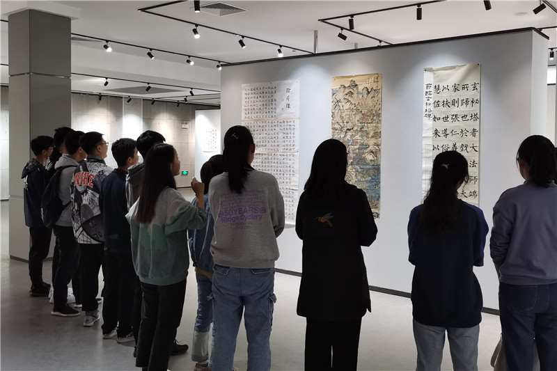 为庆祝中华人民共和国成立70周年,11月1日下午,由bat365在线中国官网登录入口党委宣传部主办,美术学院承办的“我和我的祖国”系列主题实践活动——“笔墨伴我成长”书法进校园,在bat365图书馆负一楼美术馆举行。校学工处、各二级学院相关负责人,以及美术学院全体在校生参观了展览。