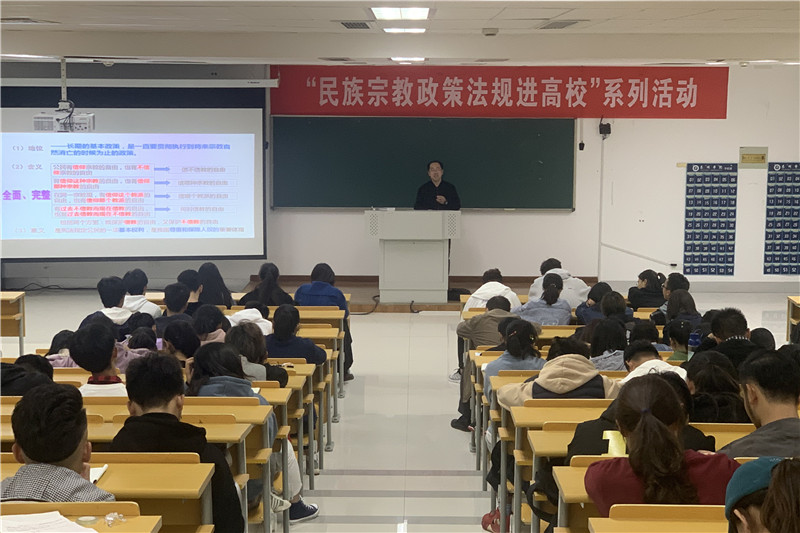 为深入学习贯彻习近平总书记关于民族宗教工作重要讲话精神,进一步深化泰院师生对党的民族宗教政策的认识,牢固树立正确的民族宗教观,11月13日,bat365在教学楼A2307举办“民族宗教政策法规进高校”专题讲座,学校邀请了泰州市民宗局政策法规处副处长张振宁作题为《我国的宗教政策》专题讲座。学校各二级学院学工书记、辅导员、学生共计200余人参加讲座。讲座由学工处副处长蒋凤锁主持。