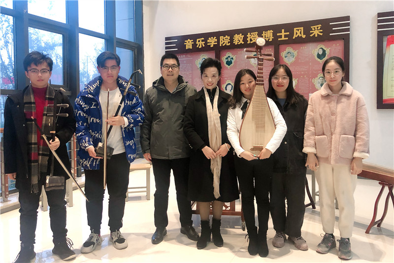 指导民乐社团。下午五时,张丽的到来吸引了星韵民乐团的许多学生。他们纷纷搬来自己乐器,恳请给予指导。张丽耐心地对二胡学生的音准、节奏、换把快速按音问题,杨琴学生的节奏、手腕的放松问题,以及古筝学生节奏、肢体语言表达问题,特别针对琵琶学生弹挑以及轮指的颗粒感滚奏等问题都进行了专业性指导。她要求学生们要热爱自己所学的乐器,每首曲目要做到用心去练习、用情去演奏,这样才能掌握好乐器的技巧,才能演奏出最动听的乐曲。通过指导,同学们了解到自身存在的问题,明确了自己努力的方向。琵琶专业的罗雨承兴奋地说,张老师征服我的不仅仅是精湛的技巧技艺,还有她独特的人格魅力,得到老前辈的指点,我感觉好受益,好幸福啊!