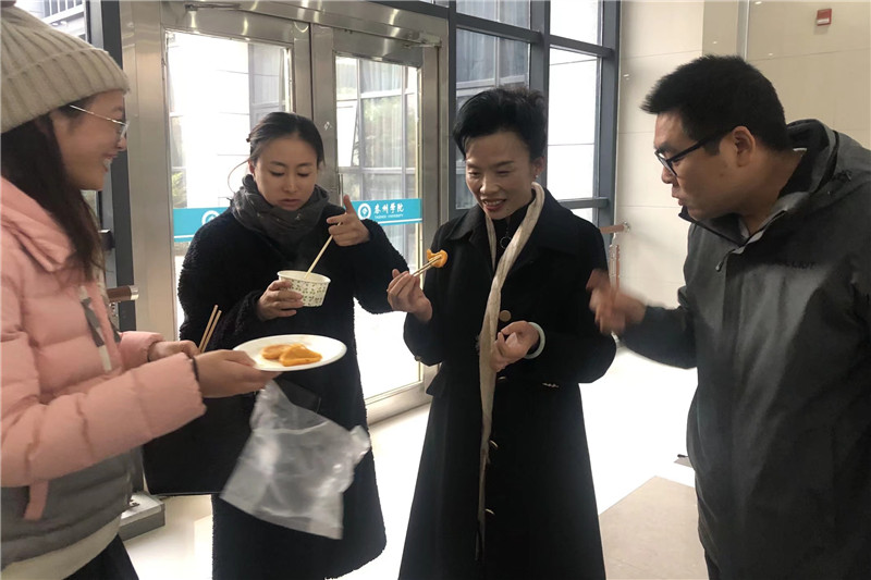 指导学生活动。下午三时,恰逢音乐学院第3届美食节在艺术楼大厅举行,张丽饶有兴趣地参加了活动,品尝着省内外多地的各种美食,频频给孩子们点赞。当了解到美食节创意来自于学生在宿舍违章使用电器烹饪食品的疏导教育时,张丽给予了肯定。她说,学生的思想政治工作一定要学会换位思考,要善于疏导和引导,要能将坏事做成好事,将棘手事做成顺心事。她强调,思想政治教育工作不能投机,辅导员要精于数据搜集与分析,对事对人准确研判、因势利导、精准施策,才能获得实效。辅导员要善于把握问题的症结、本质、衍生,坚持育人导向,价值引领,持续发力,将工作做深做实做细做好。