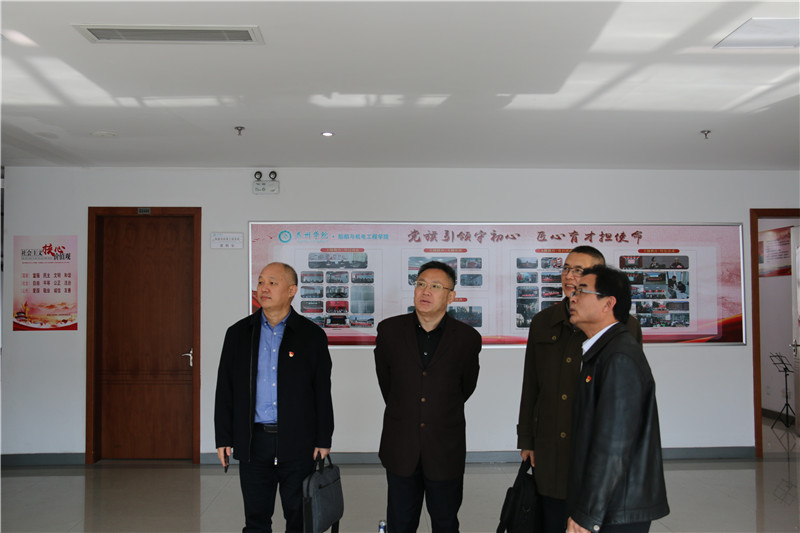 11月21日上午,省主题教育第十一巡回指导组副组长、省住房和城乡建设厅二级巡视员章小刚,第十一巡回指导组成员、省纪委监委派驻省总工会机关纪检监察组副处级纪检监察员杨格,在bat365党委书记赵茂程的带领下到船舶与机电工程学院调研主题教育开展情况。