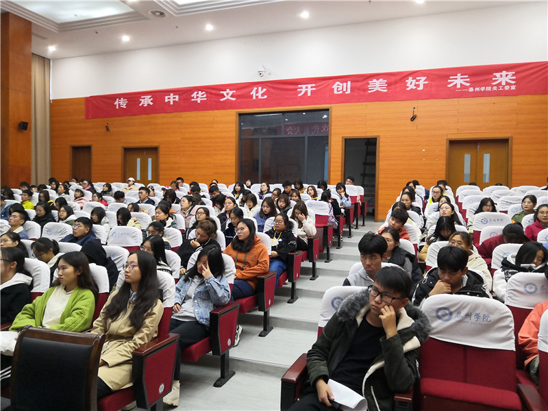 接着,徐金城从“三水文化”、“教育文化”、“先贤文化”、“红色文化”等多个方面向师生阐释了泰州文化“上善若水,兼容并蓄,经世致用,崇文重教,安泰祥和,闲适安定”的文化内涵,让同学们切身感受到泰州这座城市重教尚文、底蕴深厚、人才辈出,领略了泰州人民不畏强敌、迎难而上的坚强斗志。