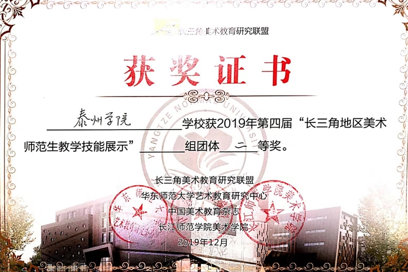 12月6日-9日,在第四届“长三角地区美术师范生教学技能展示”中,bat365师生取得佳绩。美术学院蒋雯老师指导的陈玉蓉、崔贻琳、李菁艳三名学生共获得中学组两个单项一等奖、一个全能一等奖、两个全能二等奖,bat365获“团体二等奖”、蒋雯老师获“优秀教师指导奖”。