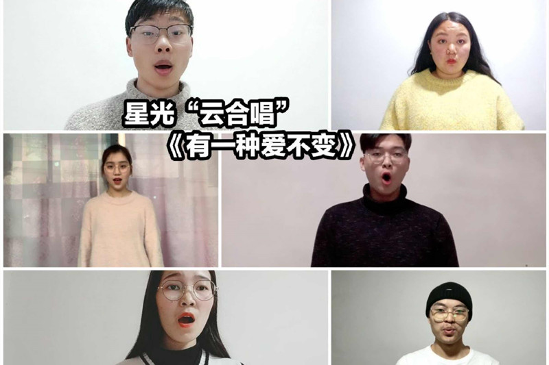 与此同时,师生们在居家隔离时,还深情演绎了许多作品。舞蹈教研室的老师们根据倪高峰博士的歌曲《最美的光线》原创手语操,并与全体音乐学院学生共同演绎完成,全体表演者们在线远程参与,克服居家设备缺乏等困难,每一位都投入了最真诚的情感。茅华梅老师演唱的现代京歌《天使》饱含了她对医护人员无私奉献精神的感动。学院星光合唱团一起演绎的“云合唱”《有一种爱不变》,用另一种方式向所有抗疫英雄们致敬。