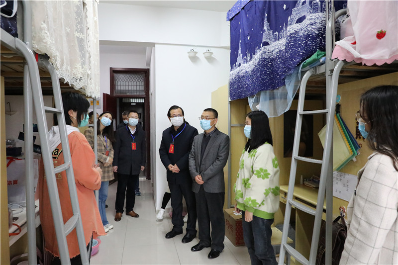当天下午,赵茂程、徐向明、张曙光、周建超、吴菁、鲁学军等校领导去宿舍慰问了返校的学生,向同学们介绍了学校疫情防控的一些措施,勉励同学们保持积极的心态面对疫情,按照学校要求开展线上线下学习活动。校领导们还检查了宿舍、食堂的疫情防控和服务准备工作。