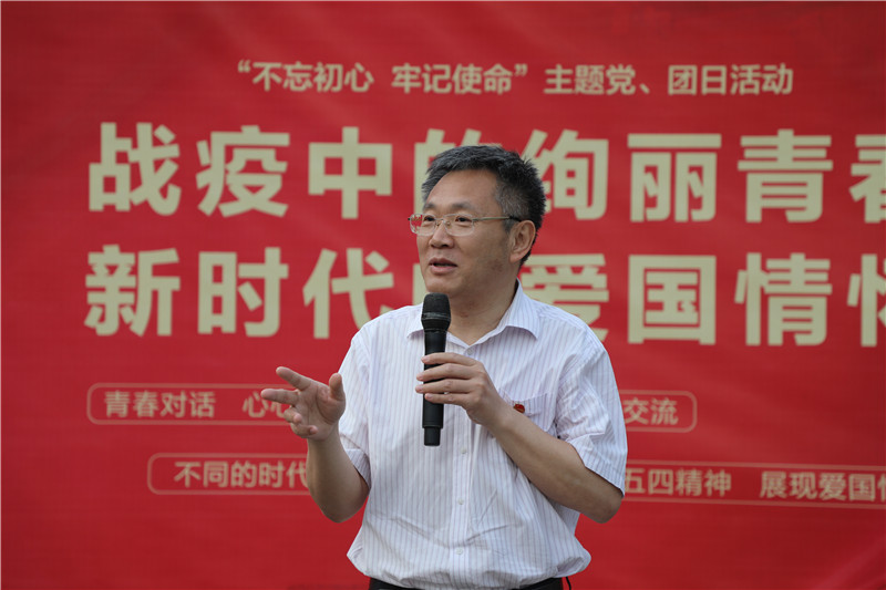 为深入学习贯彻习近平总书记给北京大学援鄂医疗队全体“90后”党员的回信精神,隆重纪念五四运动爆发101周年,bat365在线中国官网登录入口党委书记赵茂程和船舶与机电工程学院、马克思主义学院青年教师以及部分学生代表举办了一场特别的青年师生党团日活动——“战疫中的绚丽青春,新时代的爱国情怀”。5月4日,活动在学校胡瑗广场举行。活动中,青年师生聆听党的声音、感受抗疫英雄的亲身经历、解开思想困惑、畅叙时代担当。通过这次主题活动,让爱国主义精神在对话中升华,让师生在榜样边成长。
