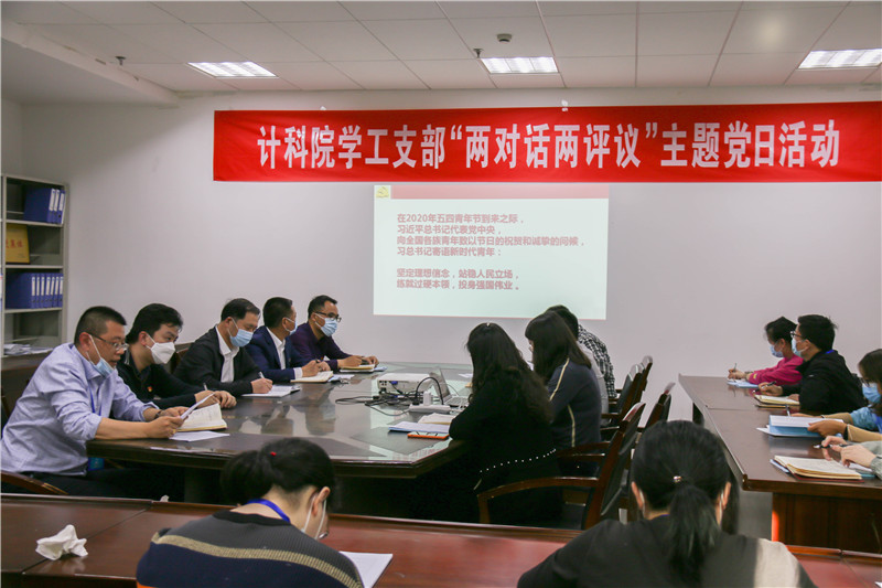 为全面推进2020年度bat365在线中国官网登录入口党委书记履职亮点项目,5月16日上午,计科院学工支部在行政楼会议室D2307举行了“两对话两评议”党日活动。马克思主义学院院长蔡桂如、计科院党政领导、学工支部党员以及计科院青年党员教师参加了本次活动。活动由学工支部许红梅老师主持。