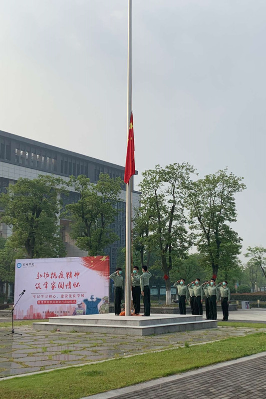 本次主题升旗活动也是数理学院优良学风建设主题活动的重要一环,旨在通过弘扬抗疫精神,让广大学生筑牢家国情怀,引导全体学生回归刻苦学习常识,诚信考试,形成良好的班风学风,进而促进学生自我成长和全面发展,为学校迎评工作贡献自己力量。(人民武装部 数理学院)
