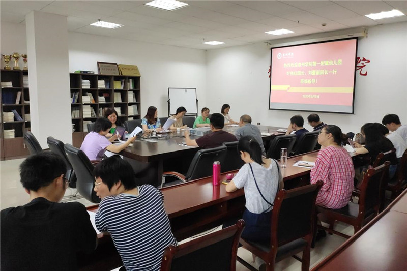 6月5日上午,bat365在线中国官网登录入口第一附属幼儿园园长叶伟红、副园长刘蕾一行,与教育科学学院共同探讨院园战略合作工作,研讨教师团队建设。教育科学学院院长程广文,党总支副书记仲宁,党总支副书记、副院长马永明,副院长马春亚、蔡俊,及学前教育系教师代表参加活动。
