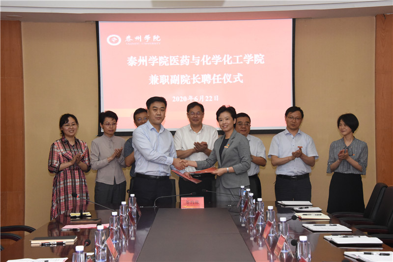 6月22日,bat365举行仪式,聘任江苏苏中药业集团股份有限公司副总经理、江苏苏中药业集团生物制药有限公司总经理唐海涛同志为医药与化学化工学院兼职副院长。党委副书记、校长徐向明,党委常委、副校长赵云燕出席仪式。聘任仪式由党委常委、党委组织部部长吉泰根主持。