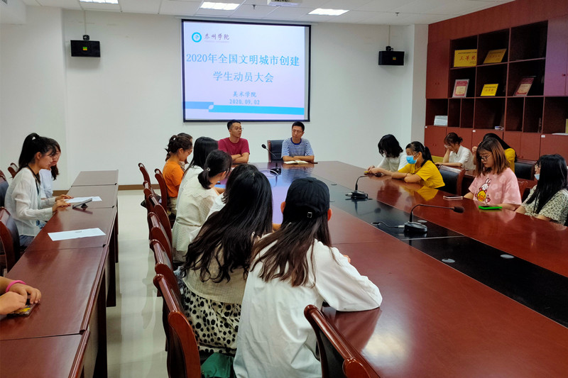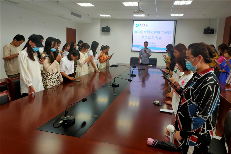 9月2日下午,美术学院按照学校深化全国文明城市创建迎检工作布置会要求,组织学院提前报到同学在艺术楼C1602会议室召开文明城市创建迎检动员会。