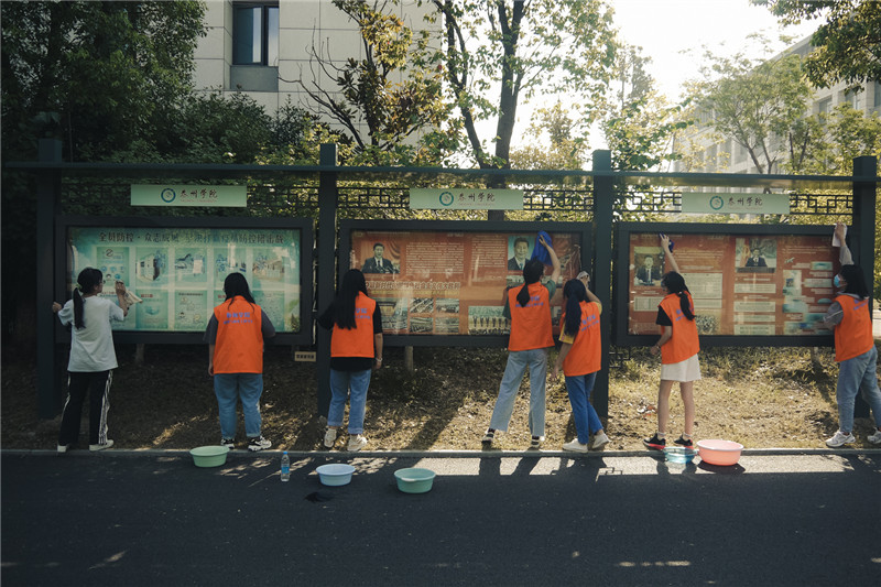 为创新开展劳动教育,2020年秋新学期开始,船舶与机电工程学院将每个月第一个周日定为大学生校园劳动日。9月6日是学院第一个“劳动日”,上午8点,教学楼、宿舍区、实验实训楼,百名师生冒着高温开展了一场轰轰烈烈的校园美化劳动。同学们热情洋溢,道路上的落叶、纸屑、宣传栏上的积灰……任何一个角落大家都不放过。