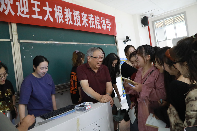 王大根教授长期致力于美术教学论的研究,他的讲座语言生动,内容丰富。讲座结束后,王大根教授为前来请教询问的同学解疑答惑,并与美术教育系教师进行了座谈交流。在学校迎接本科教学合格评估的关键时刻,邀请专家来美术学院讲座和交流对于进一步明确专业办学定位,厘清发展方向,以及高质量迎接评估有着重要意义。(美术学院)