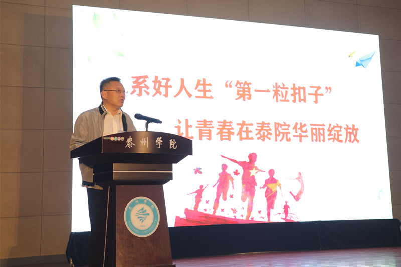 赵茂程介绍了学校厚重的底蕴,发展的历史,引导学生以校为家;他用中美抗疫情况作鲜明对比,希望每一位泰院学子都要爱国爱校,成为有深厚家国情怀的优秀泰院人;他以习近平总书记2020年9月17日下午在湖南大学岳麓书院考察调研时的讲话为题,勉励泰院新同学立志不忘初心、立志必须担当、立志务必奋斗;他还激励新同学善于追梦,善于学习,善于做事做人,善于锻炼,系好人生第一粒扣子,始终保持向前奔跑,感受探索未知的乐趣,让青春在泰院华丽绽放!
